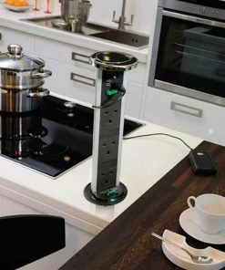 Kengo Pop Up Vertical 13A Mains Triple Socket Power Dock Black