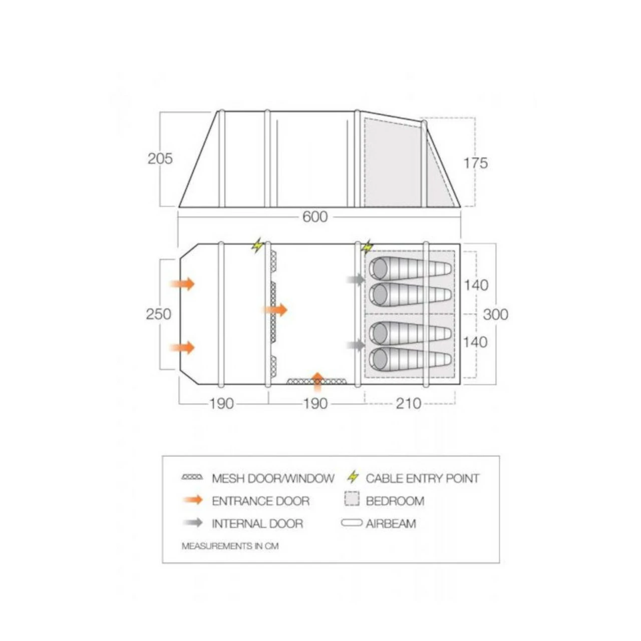 - Vango AirBeam structure with Airspeed valves for quick and easy pitching.